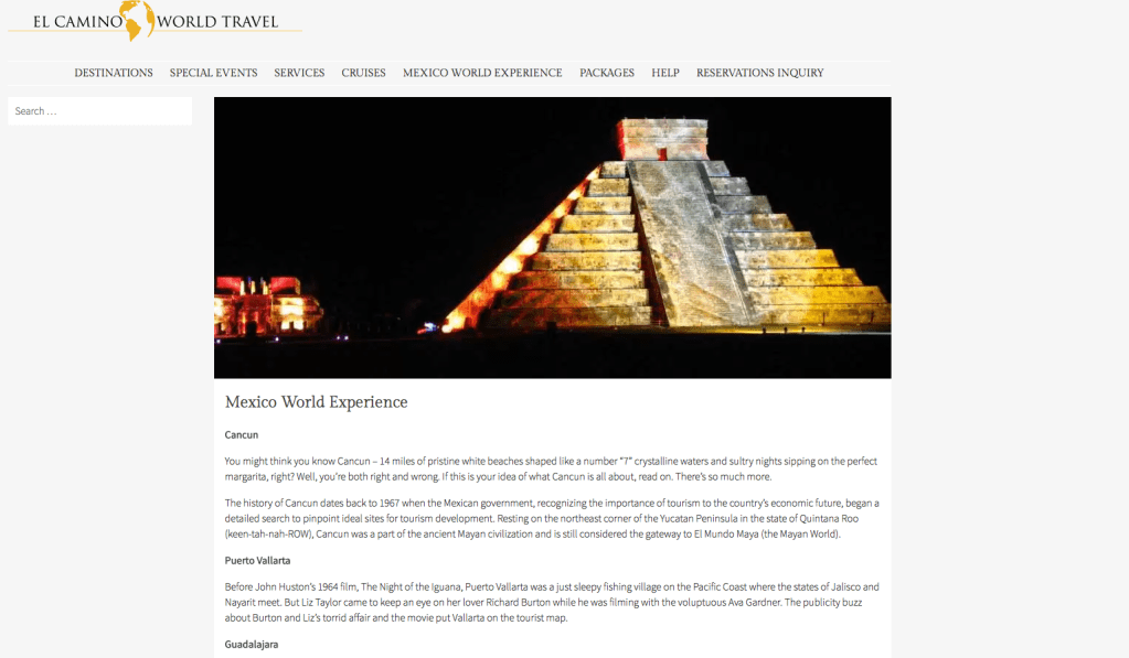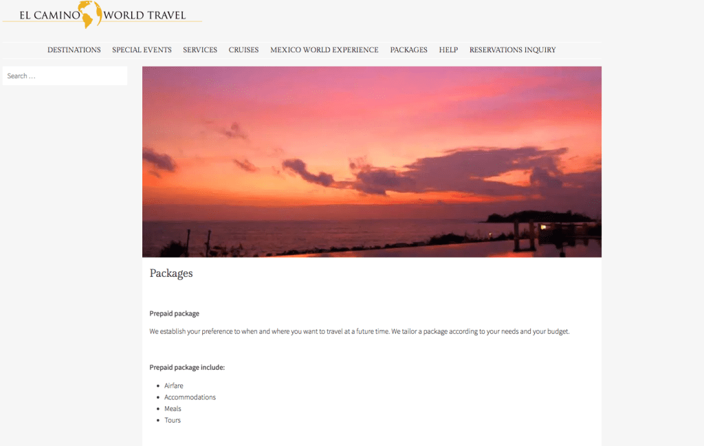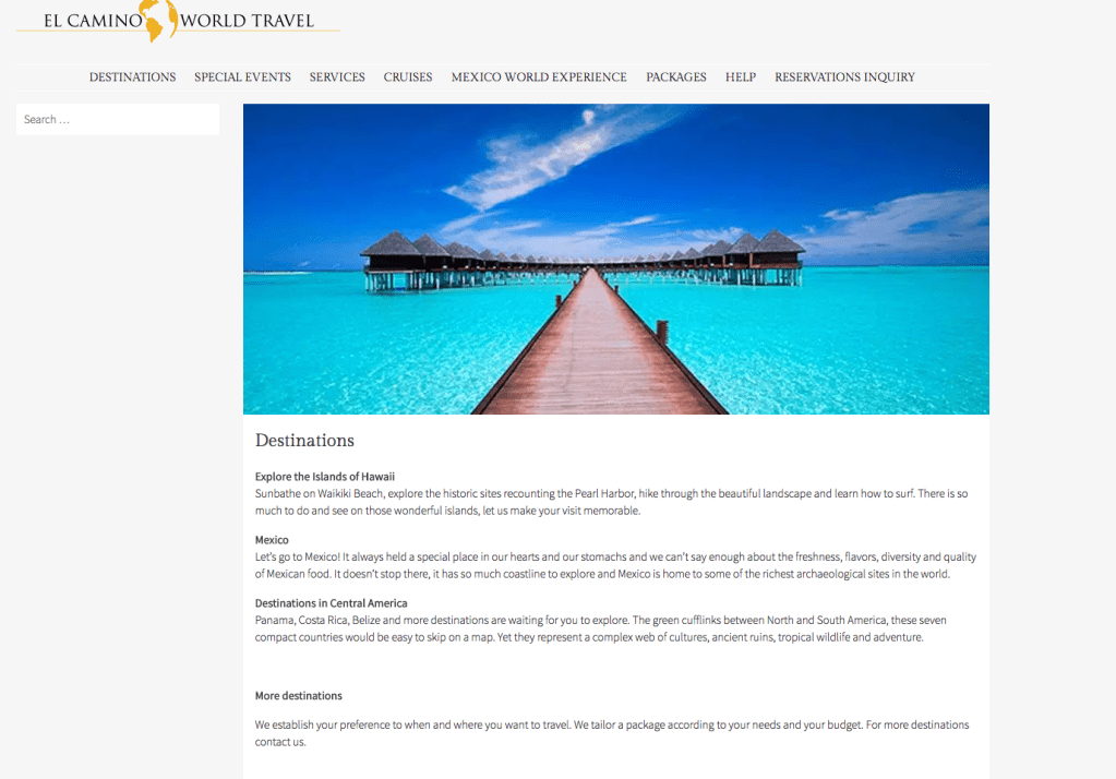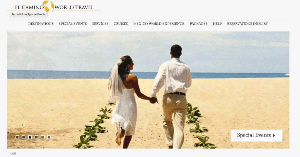 April 10, 2018May 3, 2024 El Camino World Travel: Web Development Visit El Camino World Travel by hitting this link. Share this: Share on X (Opens in new window) X Share on Facebook (Opens in new window) Facebook Like Loading...