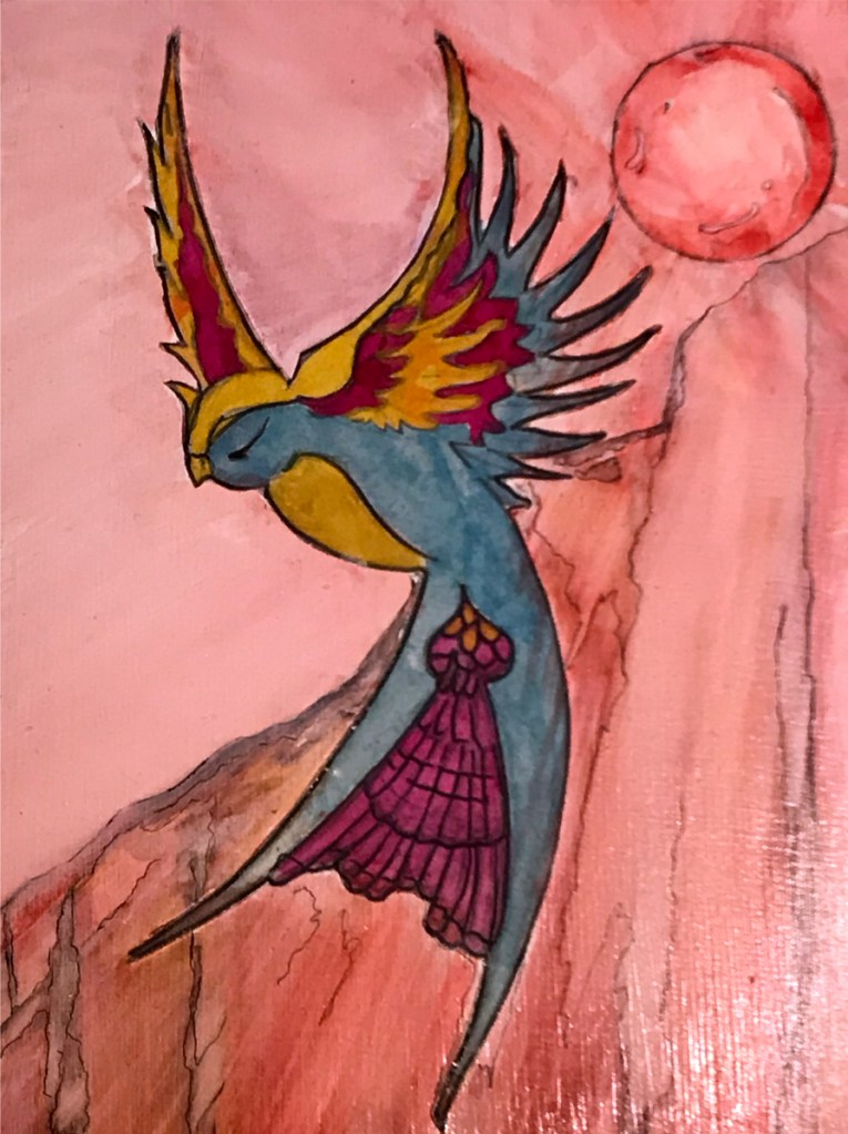 These are a set of sketches after color treatment. The images are created with watercolor, graphite, charcoal, ink, and sealed with polyurethane.